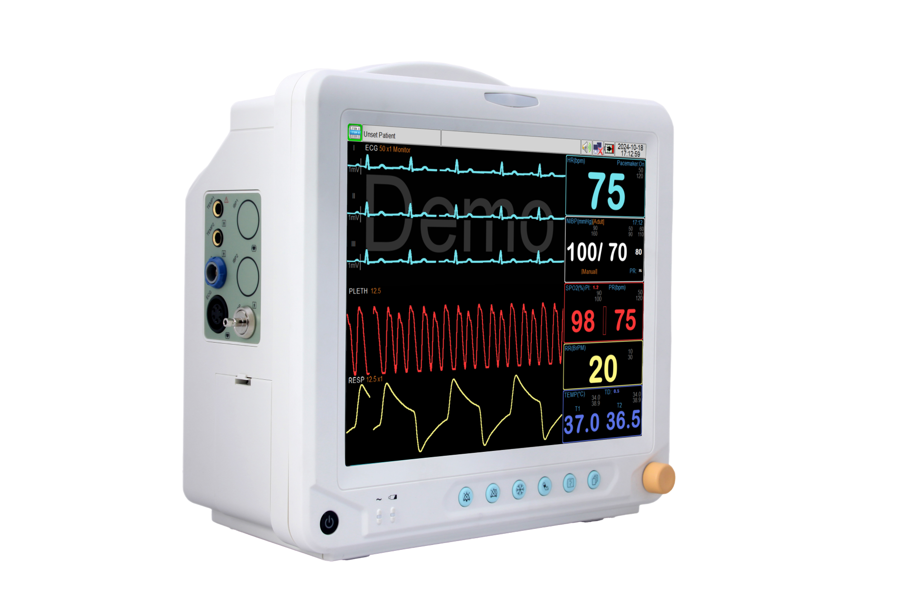 Configuración Opcional: 1/2 IBP, ECG de 12 derivaciones, SpO₂ Nellcor, SpO₂ Masimo, NIBP Suntech, EtCO₂ (mainstream / sidestream / microstream), Gasto Cardíaco, Monitorización de la Profundidad Anestésica (CSM), Monitorización de Gases Anestésicos (AG)